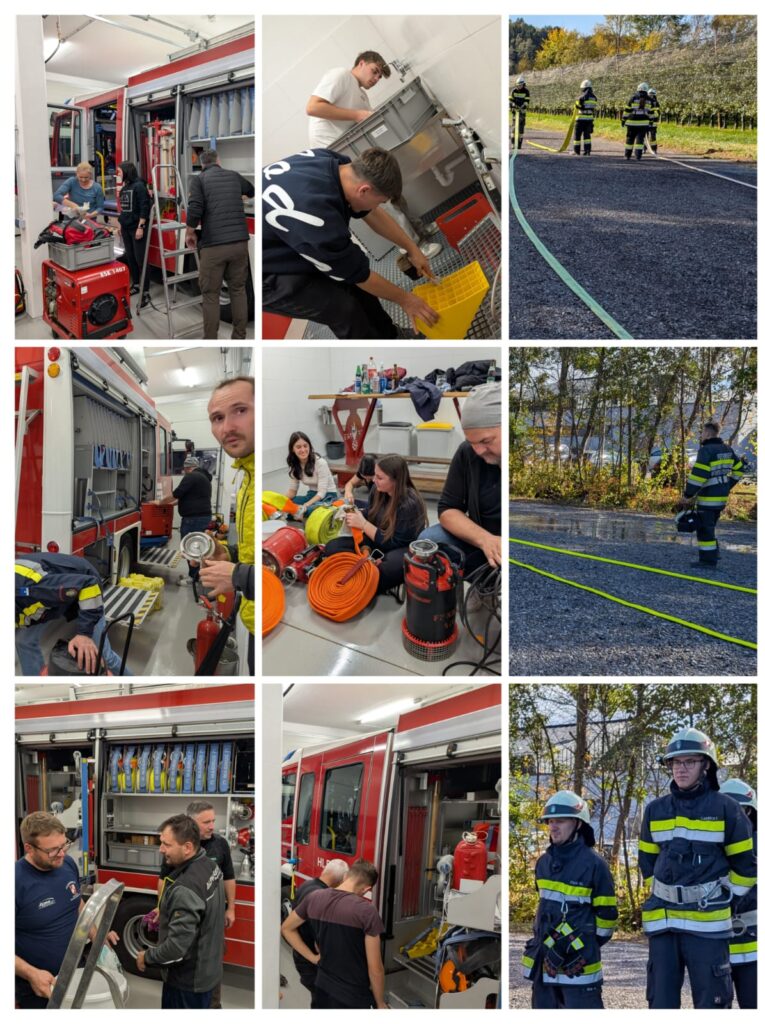 Unser GK Adi Ruprecht wiederholte mit uns am 3.9. die Inbetriebnahme, Bedienung und Nutzung der wichtigsten Geräte von HLF1 sowie LF (z. B. Pumpe, Motorsägen, Aggregat, Druckbelüfter, Lichtmast etc.). Dabei wurden diese Dinge auch gleich einer Funktionsprüfung unterzogen.
