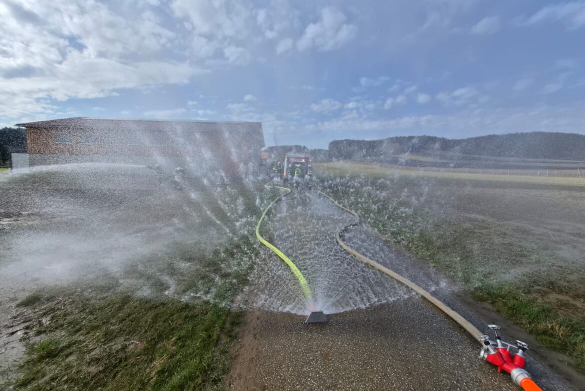 Bei der Gesamtübung am Sonntag, 15.3.2026, wurde ein Löschangriff rund um den Schweinestall der Familie Schwarz beübt. Ein besonderer Fokus lag dabei natürlich auf der Herstellung des Wasserbezuges.