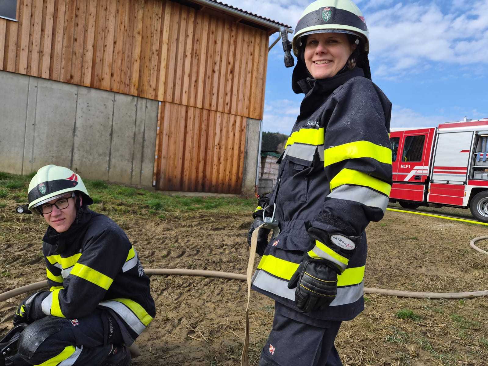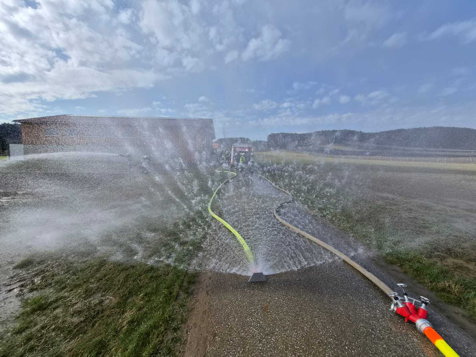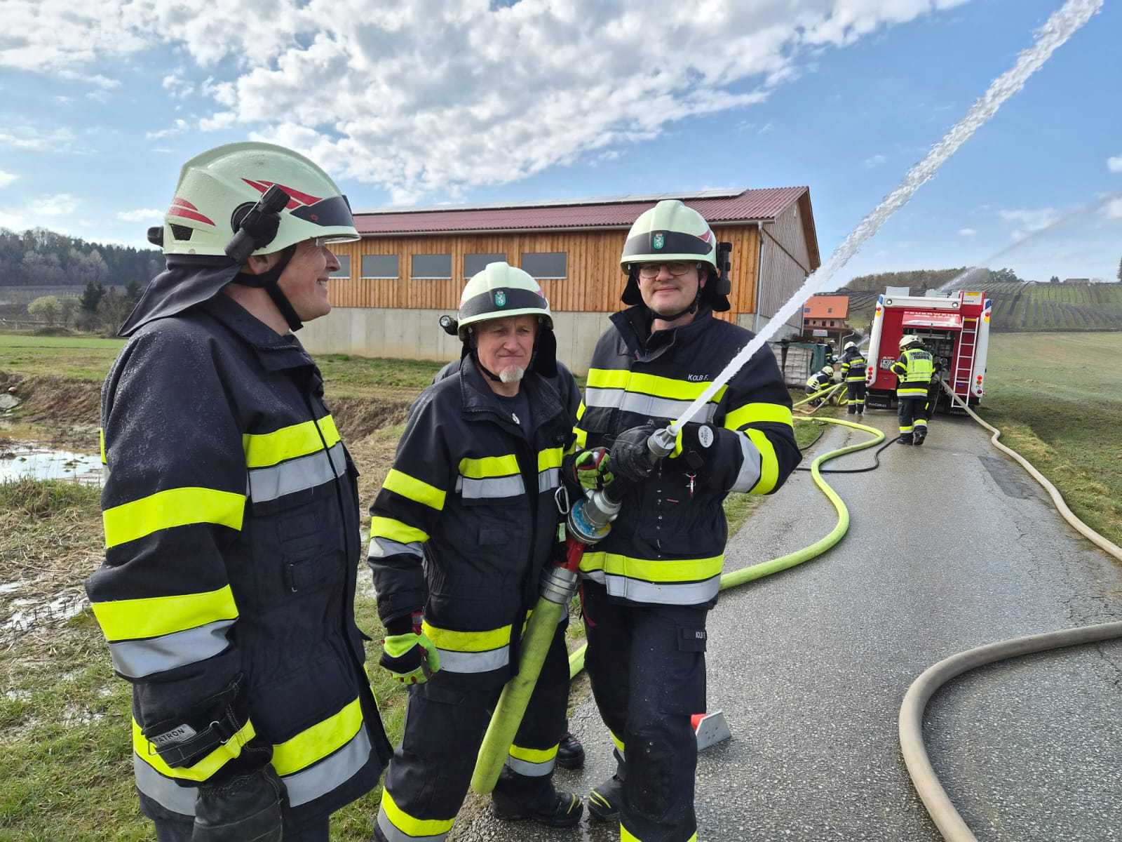 Bei der Gesamtübung am Sonntag, 15.3.2026, wurde ein Löschangriff rund um den Schweinestall der Familie Schwarz beübt. Ein besonderer Fokus lag dabei natürlich auf der Herstellung des Wasserbezuges.