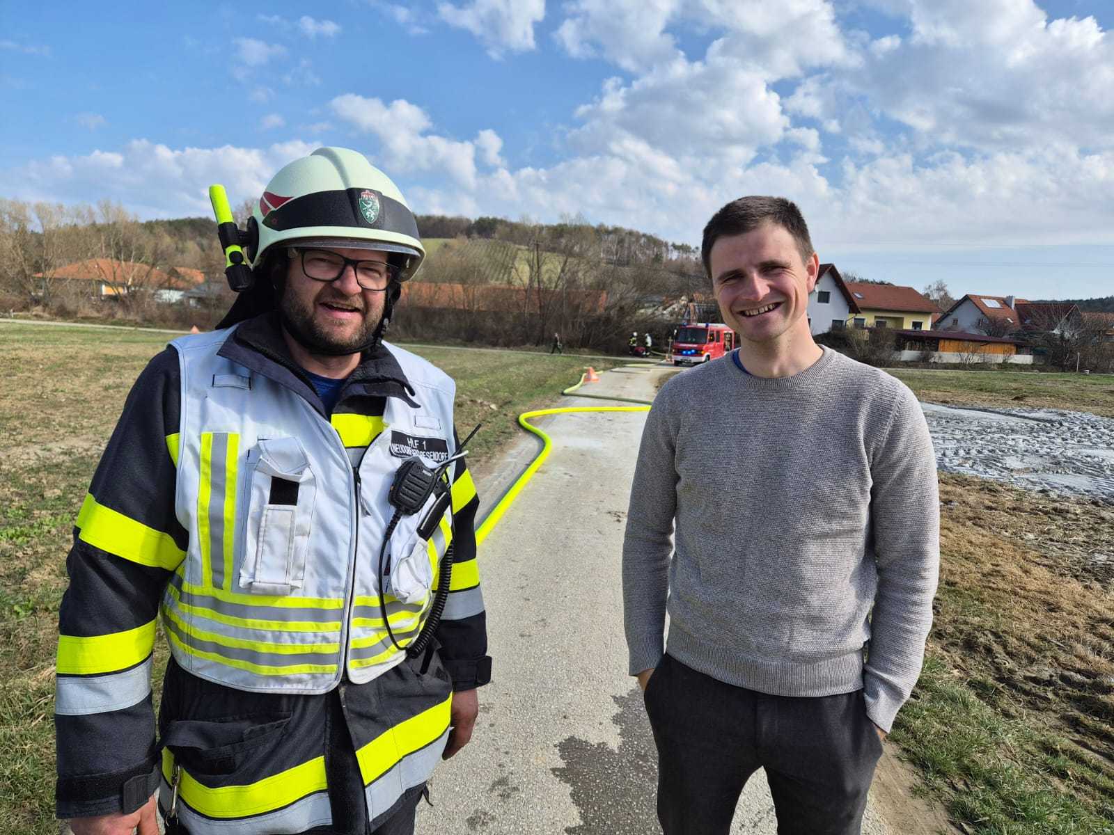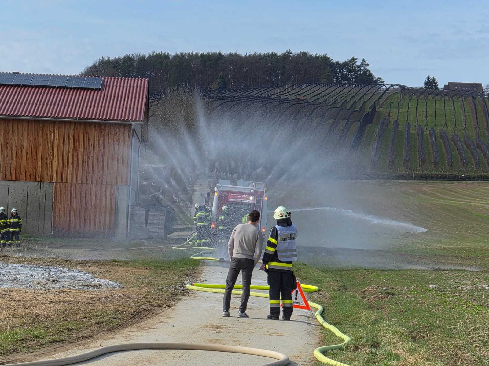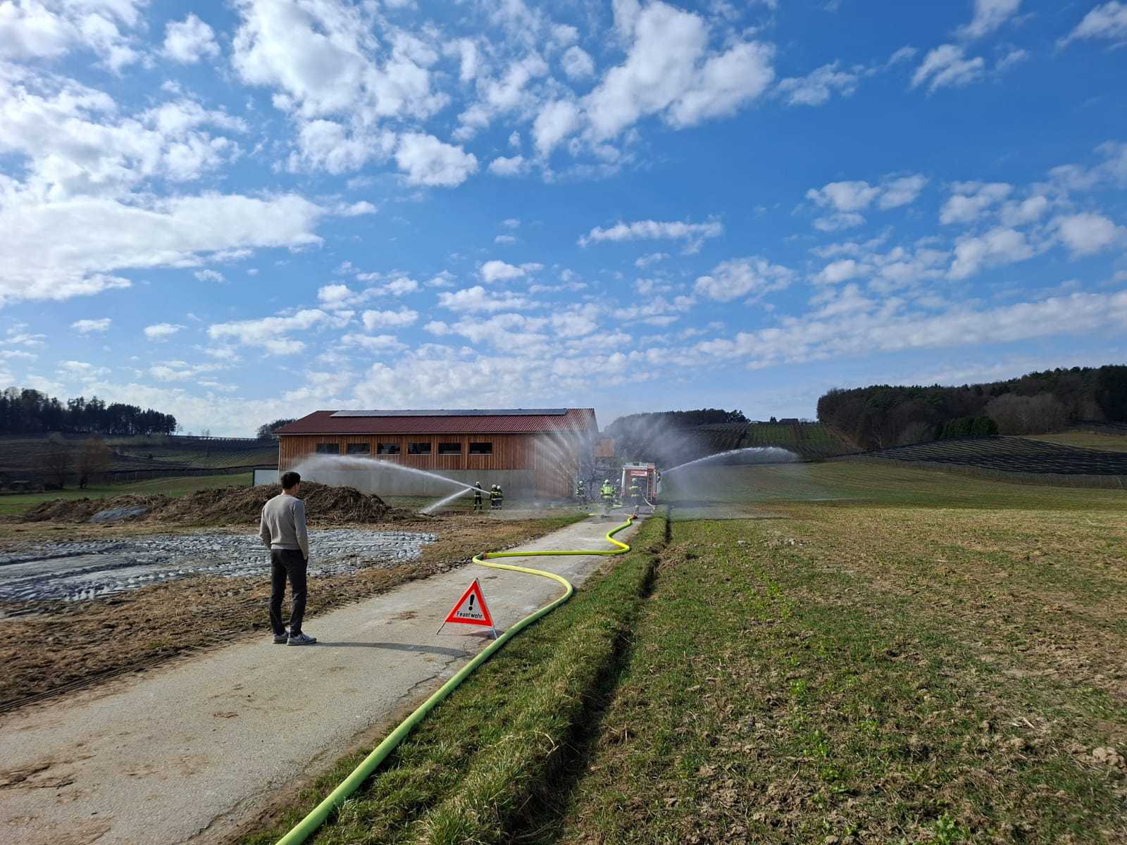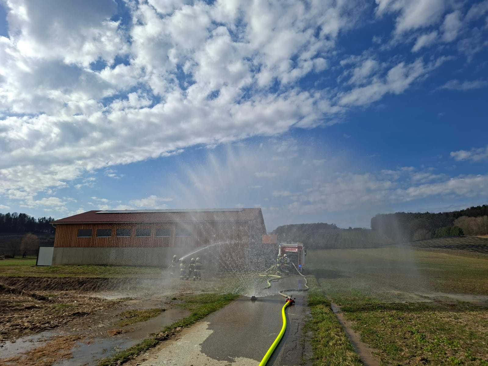 Bei der Gesamtübung am Sonntag, 15.3.2026, wurde ein Löschangriff rund um den Schweinestall der Familie Schwarz beübt. Ein besonderer Fokus lag dabei natürlich auf der Herstellung des Wasserbezuges.