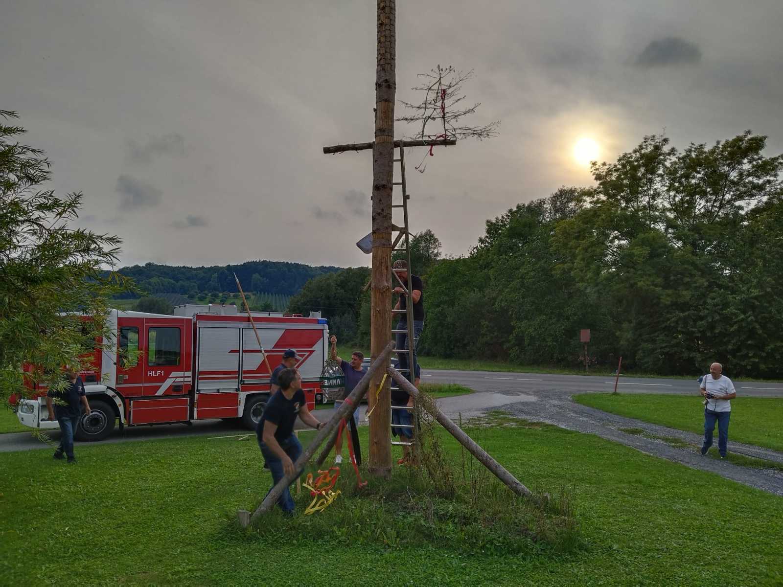 Heuer wurde der Maibaum ganz traditionell direkt am 1. Mai gestellt und ging an unseren langjährigen, sehr fleißigen „Lochgraber“ Hannes Vorderwinkler, der dankenswerterweise vielen anderen Maibäumen in den Jahren zuvor immer wieder zu einem guten Stand verholfen hatte. 😉