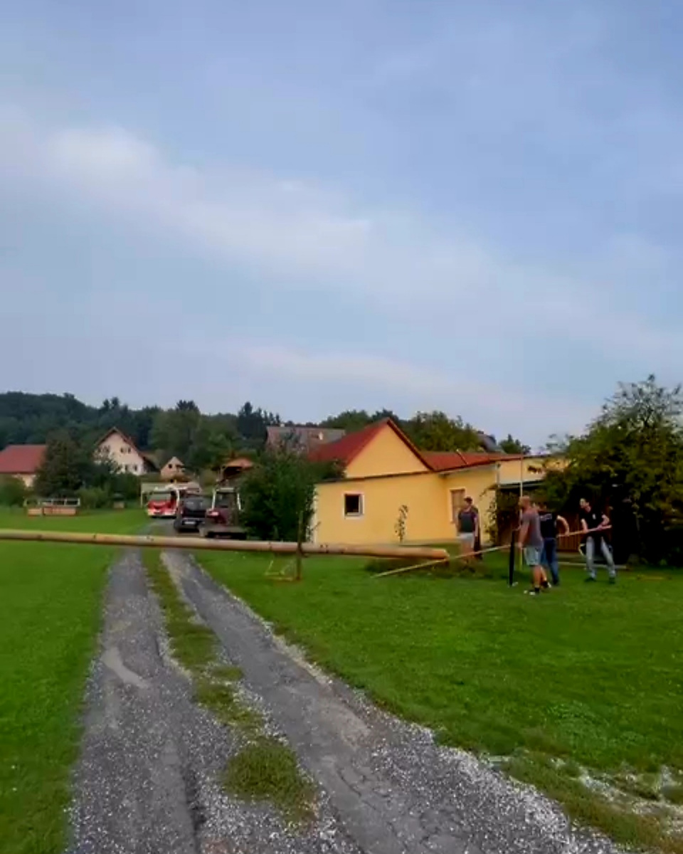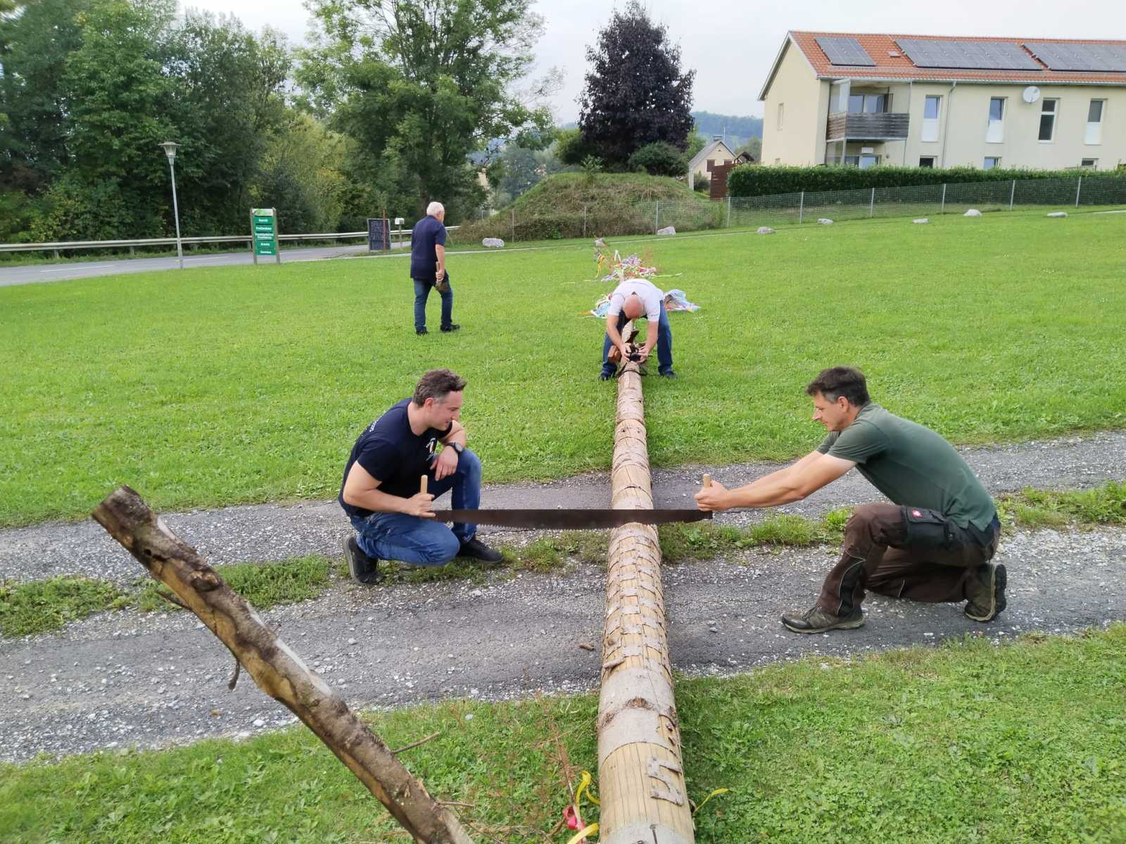 Da alles irgendwann ein Ende hat, folgt dem Maibaumaufstellen früher oder später natürlicherweise auch ein Umschneiden, wie man auf den nachfolgenden Fotos sehen kann.