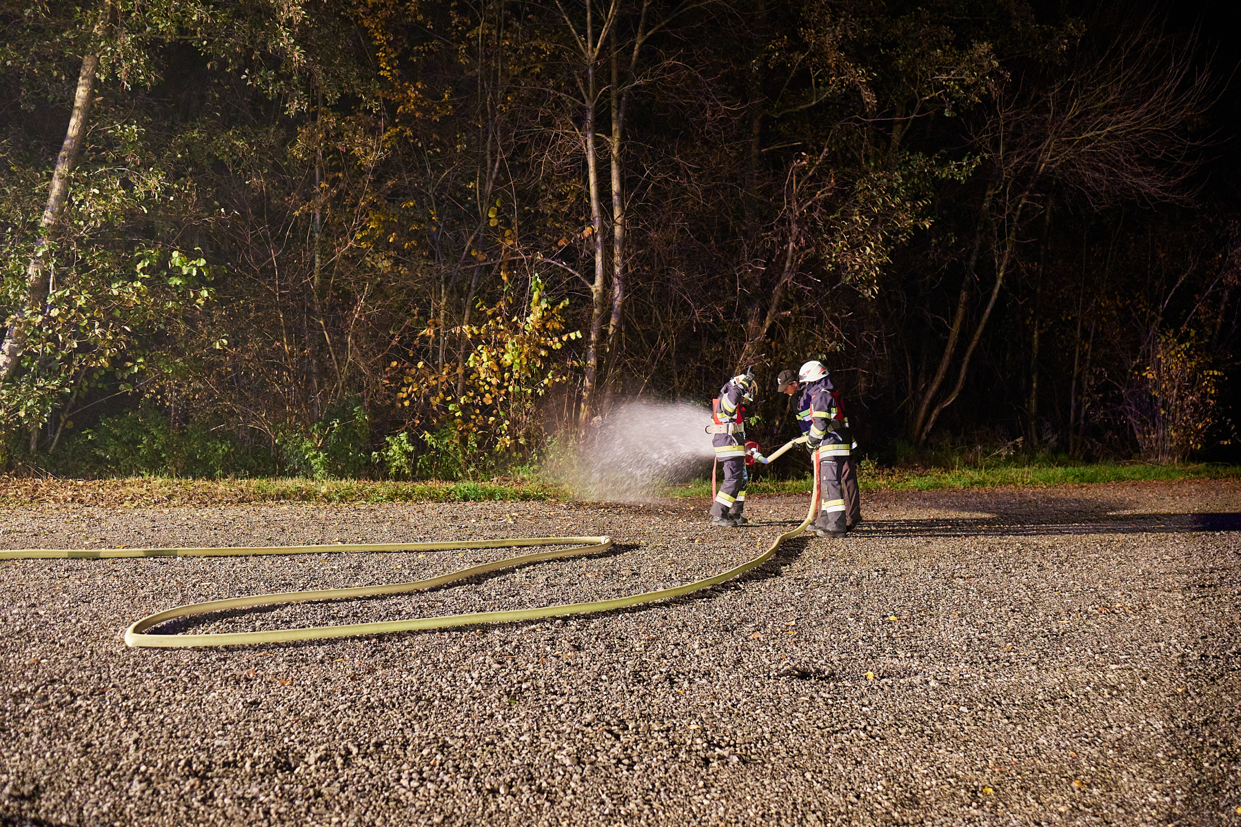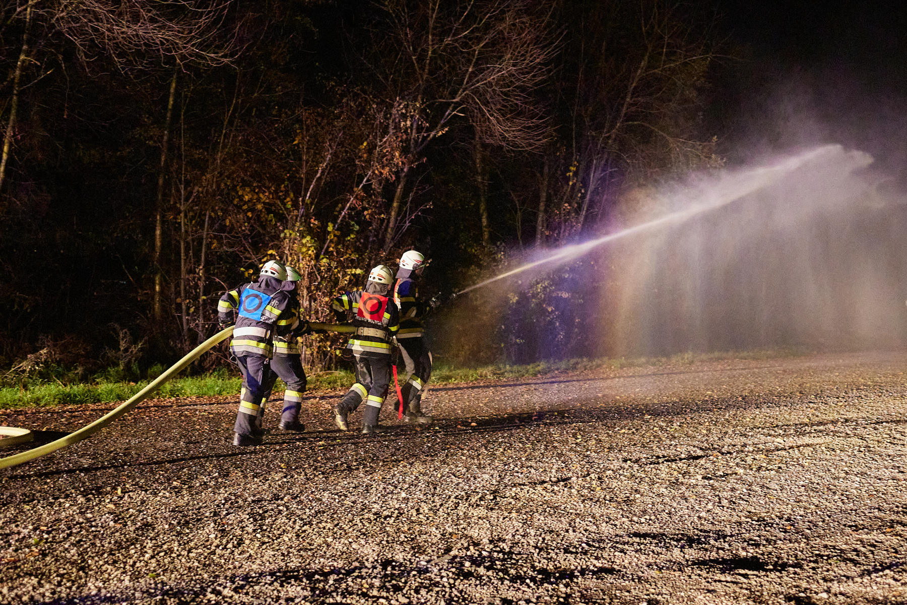 Ziel dieser Prüfung ist es Abläufe für drei verschiedene Einsätze (Holzstapelbrand, Flüssigkeitsbrand, Scheunenbrand) zu erlernen und in der vorgegebenen Zeit abzuarbeiten, damit unsere Kamerad*innen auch für den Ernstfall bestens ausgebildet sind und bei einem Einsatz jeder Handgriff sitzt. Vor der eigentlichen Prüfung musste jede Person noch ein Gerät im Fahrzeug bei geschlossenen Türen und Rollos finden sowie je eine Frage richtig beantworten.