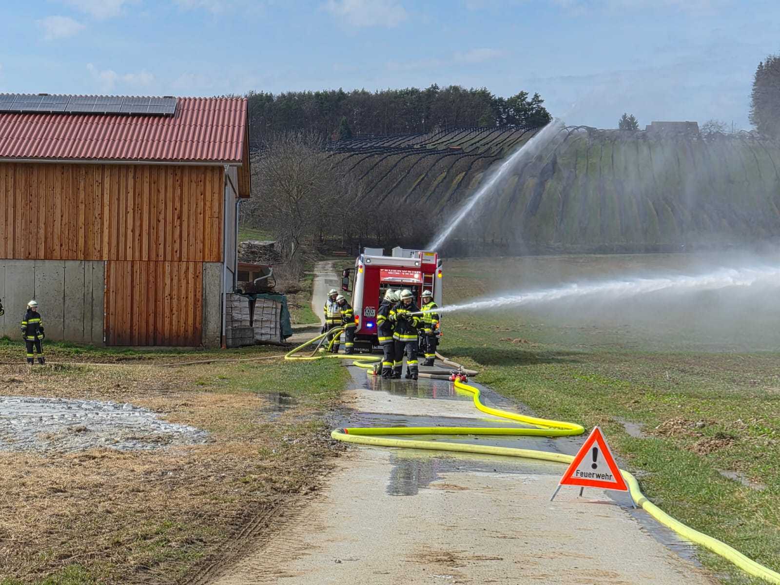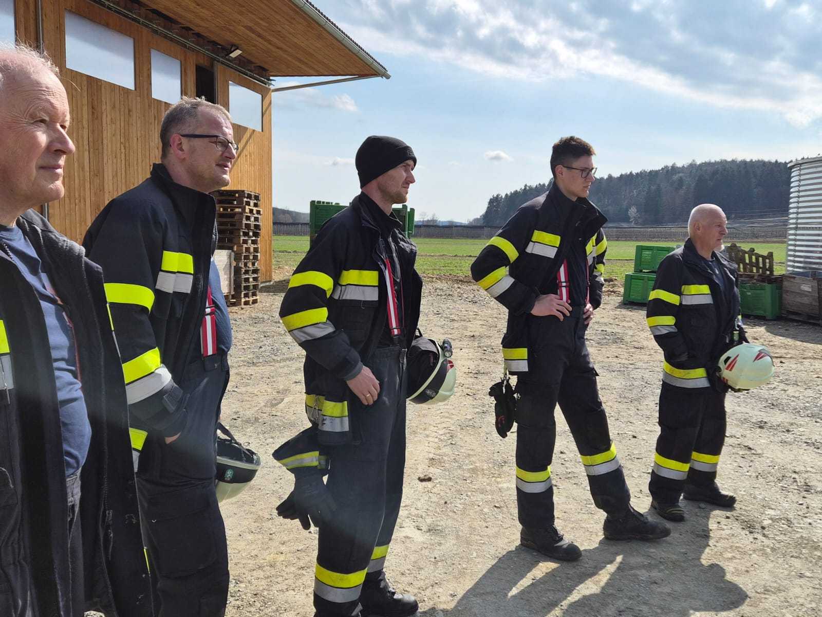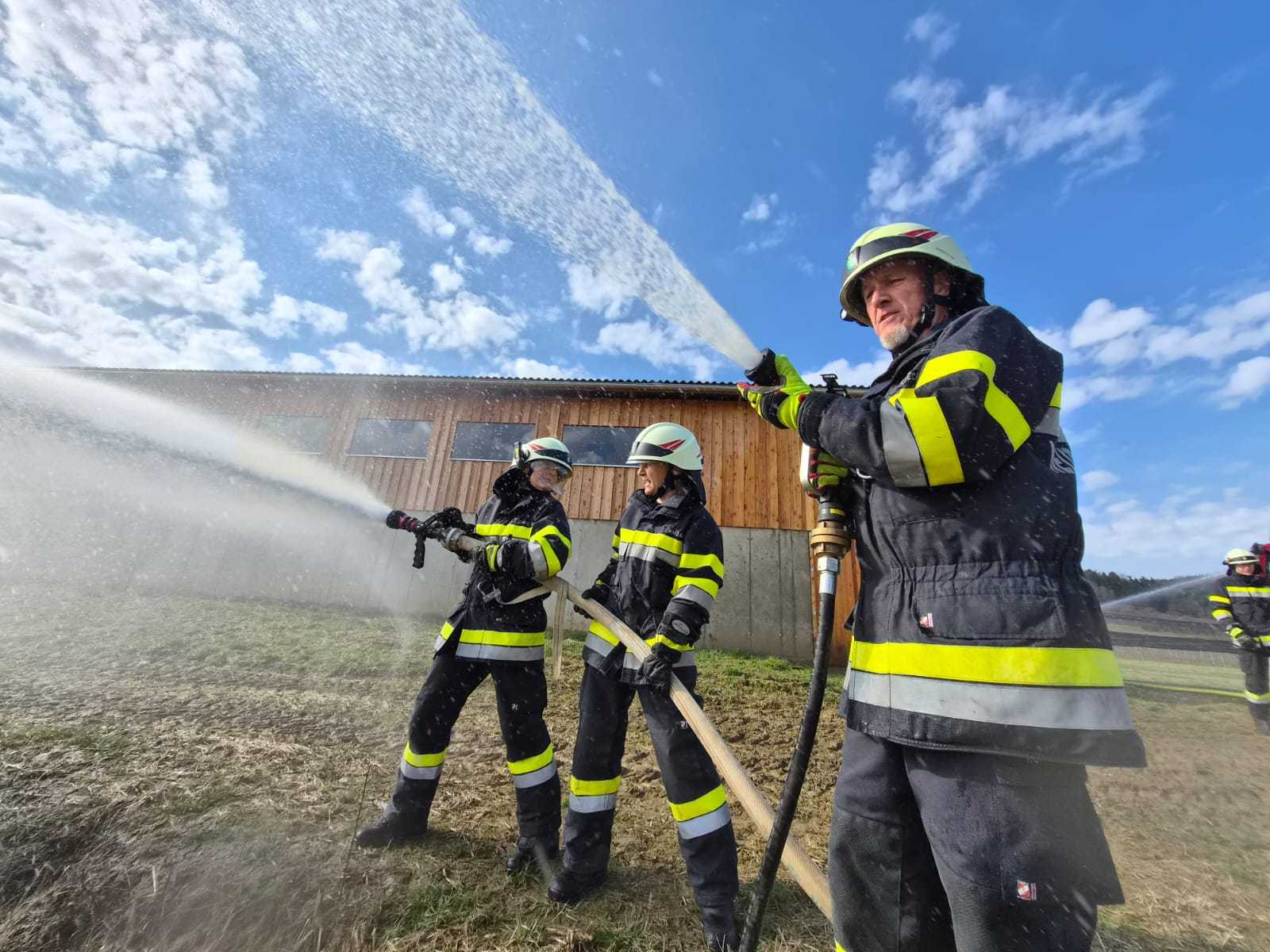 Bei der Gesamtübung am Sonntag, 15.3.2026, wurde ein Löschangriff rund um den Schweinestall der Familie Schwarz beübt. Ein besonderer Fokus lag dabei natürlich auf der Herstellung des Wasserbezuges.