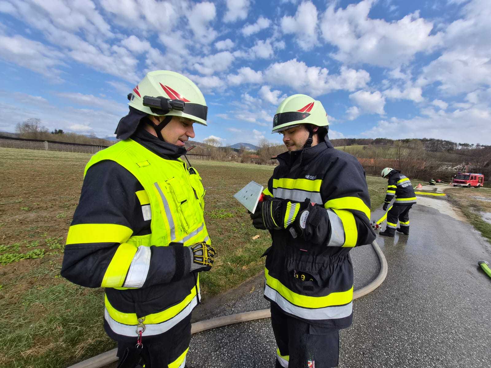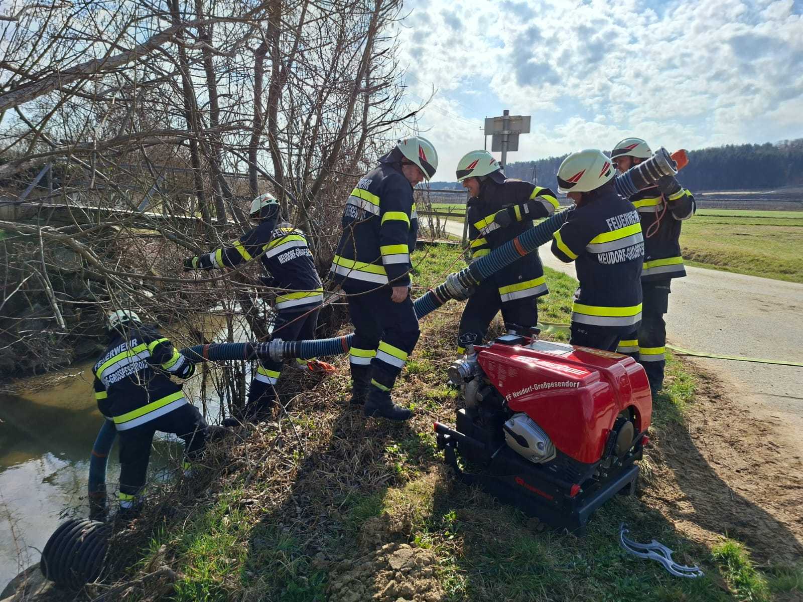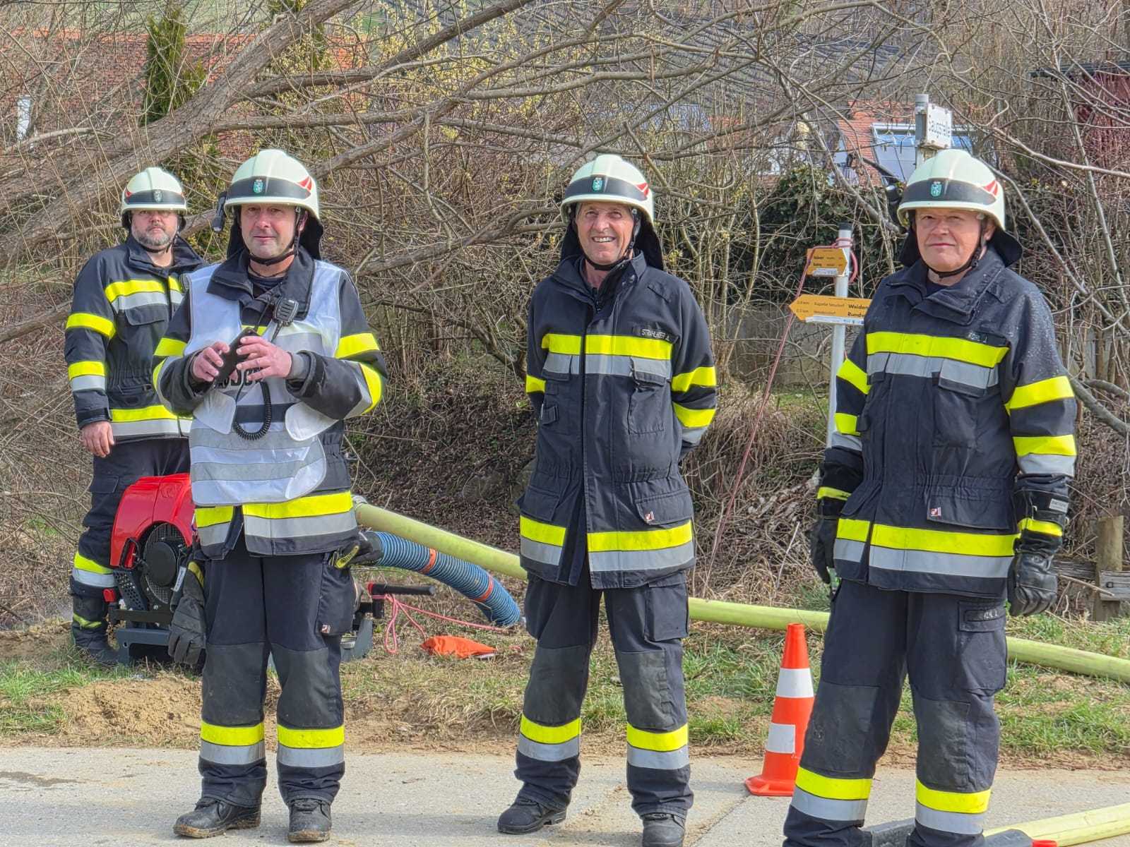 Bei der Gesamtübung am Sonntag, 15.3.2026, wurde ein Löschangriff rund um den Schweinestall der Familie Schwarz beübt. Ein besonderer Fokus lag dabei natürlich auf der Herstellung des Wasserbezuges.
