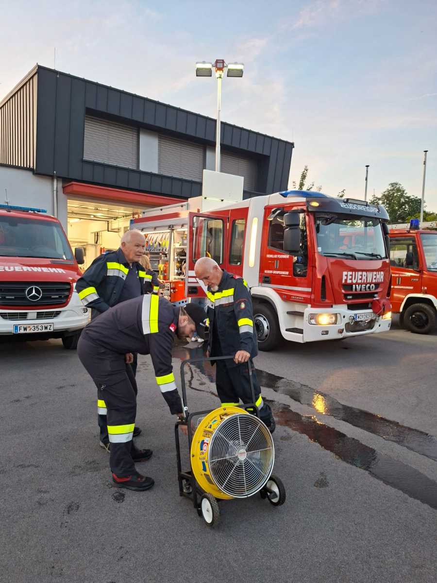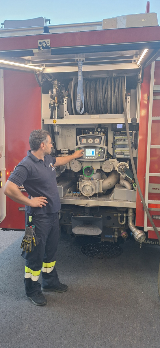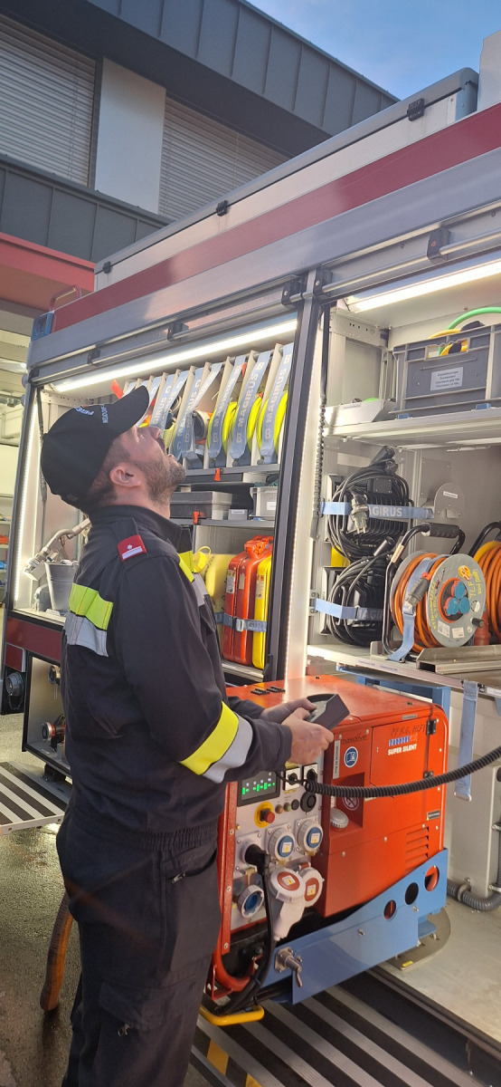 Unser GK Adi Ruprecht wiederholte mit uns am 3.9. die Inbetriebnahme, Bedienung und Nutzung der wichtigsten Geräte von HLF1 sowie LF (z. B. Pumpe, Motorsägen, Aggregat, Druckbelüfter, Lichtmast etc.). Dabei wurden diese Dinge auch gleich einer Funktionsprüfung unterzogen.