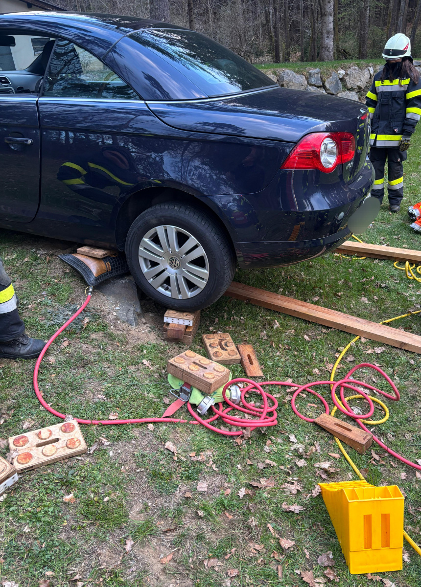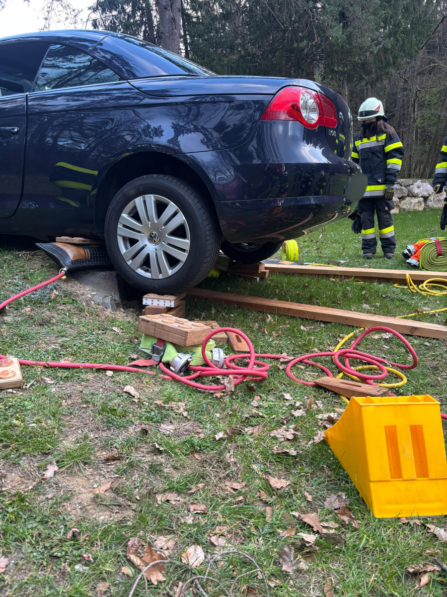 Am 29.3. wurden wir per Stillem Alarm zu einer Fahrzeugbergung gerufen: Ein PKW war in eine missliche Lage geraten.